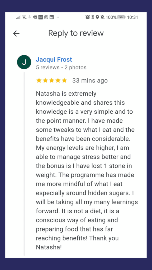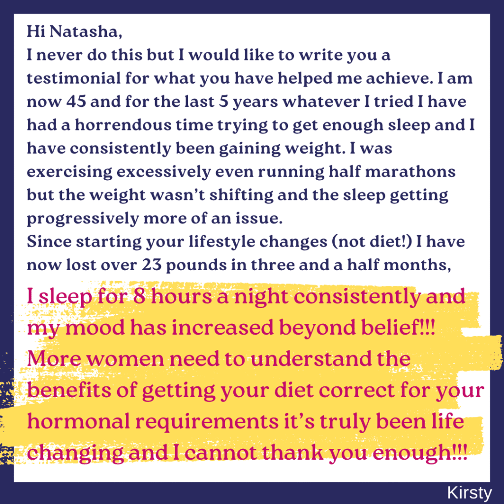 The course is for anyone who is struggling with menopause symptoms, health issues and/or stubborn weight gain. You work through the videos and PDFs at your own pace. You will have weekly personal one to one coaching sessions with Natasha and can ask questions anytime via email or WhatsApp